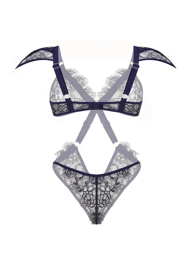 Daenerys body on luksuslik sinisest pitsist loodud mudel, mis ühendab sensuaalsuse ja mugavuse. Poolavatud rinnaosa ja dekoratiivsed lõiked toovad esile naiseliku vormi, samas kui elastsed rihmad metallrõngaste ja reguleeritavate kinnitustega tagavad täiusliku istuvuse.