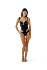 Perilla body toob kokku romantilise pehmuse ja kaasaegse joone. Ülemine osa on valmistatud läbipaistvast tüllist, mida kaunistab must lillemotiiv, andes rõivale naiseliku ja elegantse ilme.