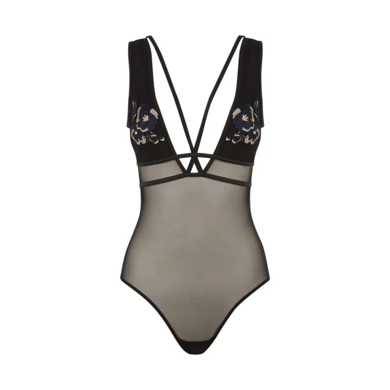 Bodil on pehmed rinnakorvid, mis on kaunistatud lillemotiividega. Paelad bodi ees ja taga loovad sensuaalse välimuse. Luksuslik bodi on kaunistatud kuldsete kinnititega.