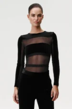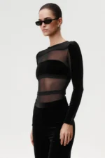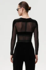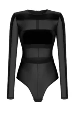 Go For It Black body on valmistatud õrnast võrkkangast, millele on lisatud sametised detailid rindade katmiseks. Kehalähedane lõige istub hästi ja püsib kandmisel paigal. Kõrge lõikega alaosa aitab jalgu visuaalselt pikendada ning ees paiknev trukkidega kinnis teeb body kandmise lihtsaks ja mugavaks. Seljaosas olev lukk aitab body’t hõlpsalt selga panna. Body sobib kandmiseks nii aluspesuna kui ka rõivaosana – näiteks pükste või seelikuga, jakiga või kampsuni all. Tegemist ei ole korrigeeriva ega sportliku mudeliga, vaid selge joonega body’ga, mida on lihtne erinevalt kombineerida.