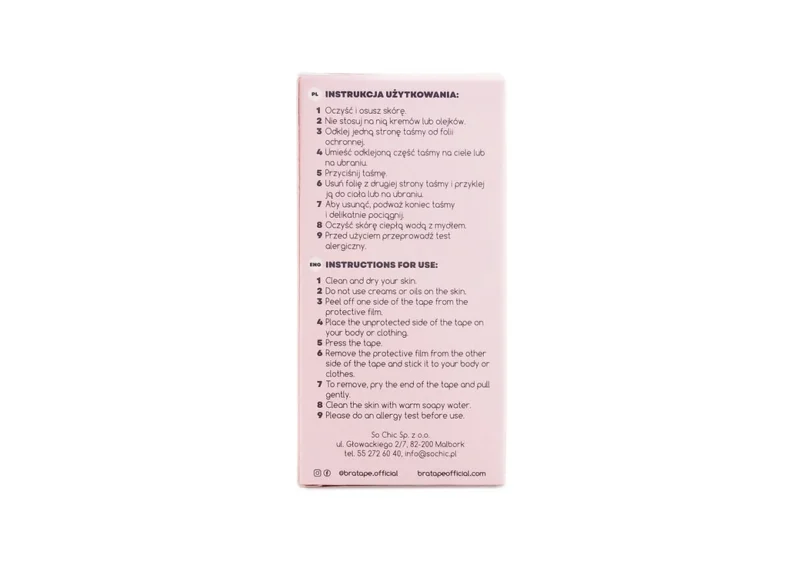 Teip võimaldab rõivaste täpse sobitamise kehakujuga, ühendades kanga kehaga või riideesemed omavahel. Valmistatud meditsiinilise kvaliteediga silikoonist – ohutu nahale, ei ärrita ega jäta jälgi. Täiuslik täiendus rinnateibile, pakkudes kindlustunnet ja esteetilist välimust, ilma liigse paljastuseta.