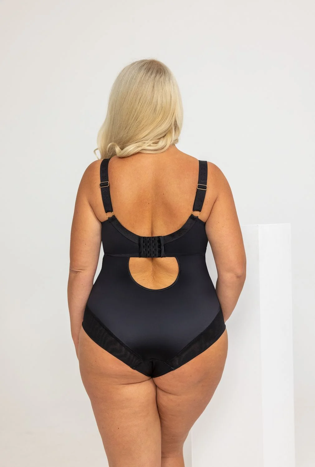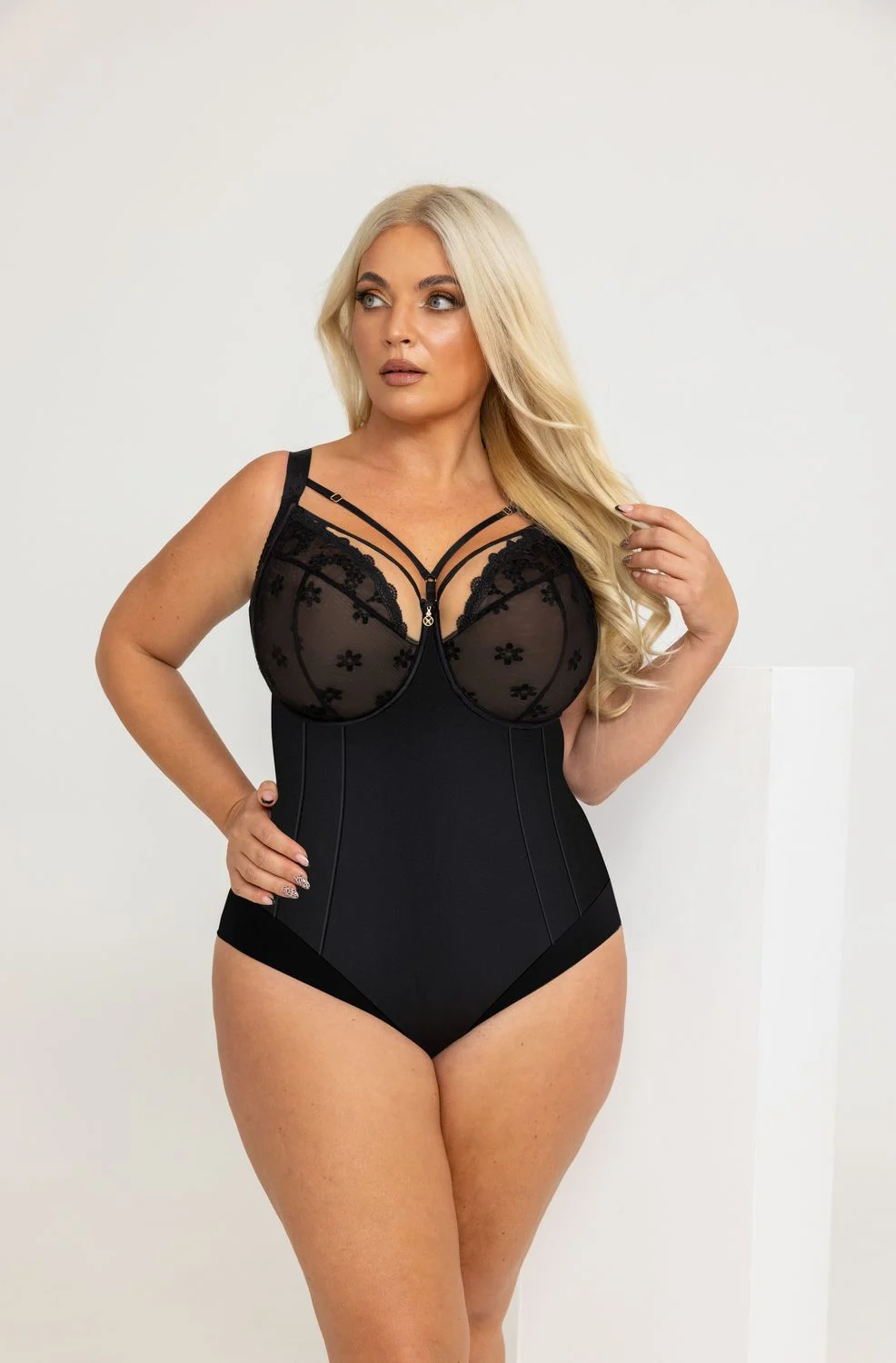 Krisline’i Fortuna kollektsiooni bodi on loodud naisele, kes soovib korraga nii tuge kui ka head istuvust. Täiskorviga lõige koondab rinna ja hoiab seda, andes kindla toe ka suuremale rinnale. Bodi lõige aitab hoida kõhupiirkonda ja toob talje selgemalt esile, luues ühtlasema silueti. Elastne materjal on nahal siidiselt sile ja püsib hästi paigas nii igapäevasel kandmisel kui ka siis, kui soovid midagi enamat. Reguleeritavad, mitte-eemaldatavad õlapaelad aitavad istuvuse täpselt enda järgi paika sättida. Hea valik, kui otsid pesu, mis teeb oma töö nähtavalt ja annab enesekindluse.