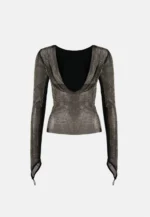 Sügava V-kaelusega seljaosal on Mesha pluus pilgupüüdja igal ajahetkel. Pluusi esiosa on topeltriidega, ülejäänud pluus on õrnalt läbipaistev. Väga kaunis ja omapärane pluus, annab iseloomu igale kandjale.