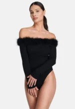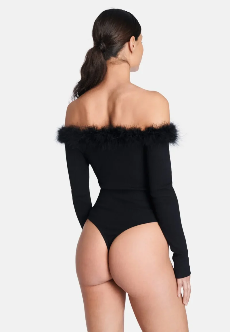 Miranda bodi on valmistatud lihtsast kangast. Bodile annab viimast lihvi kunstsulgedega kaunistatud ülaosa.