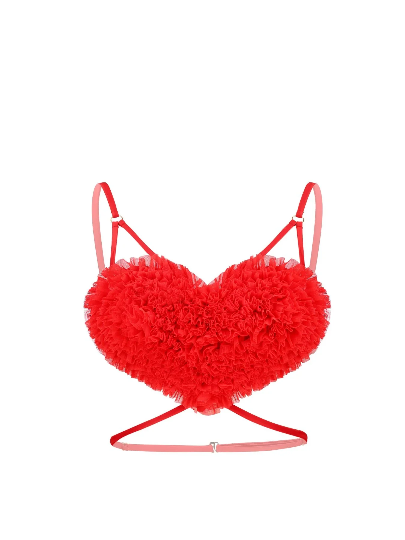 Punane pesukomplekt südamekujuliste detailidega, loodud Valentinipäevaks erilise, kuid vaoshoitud meeleoluga.