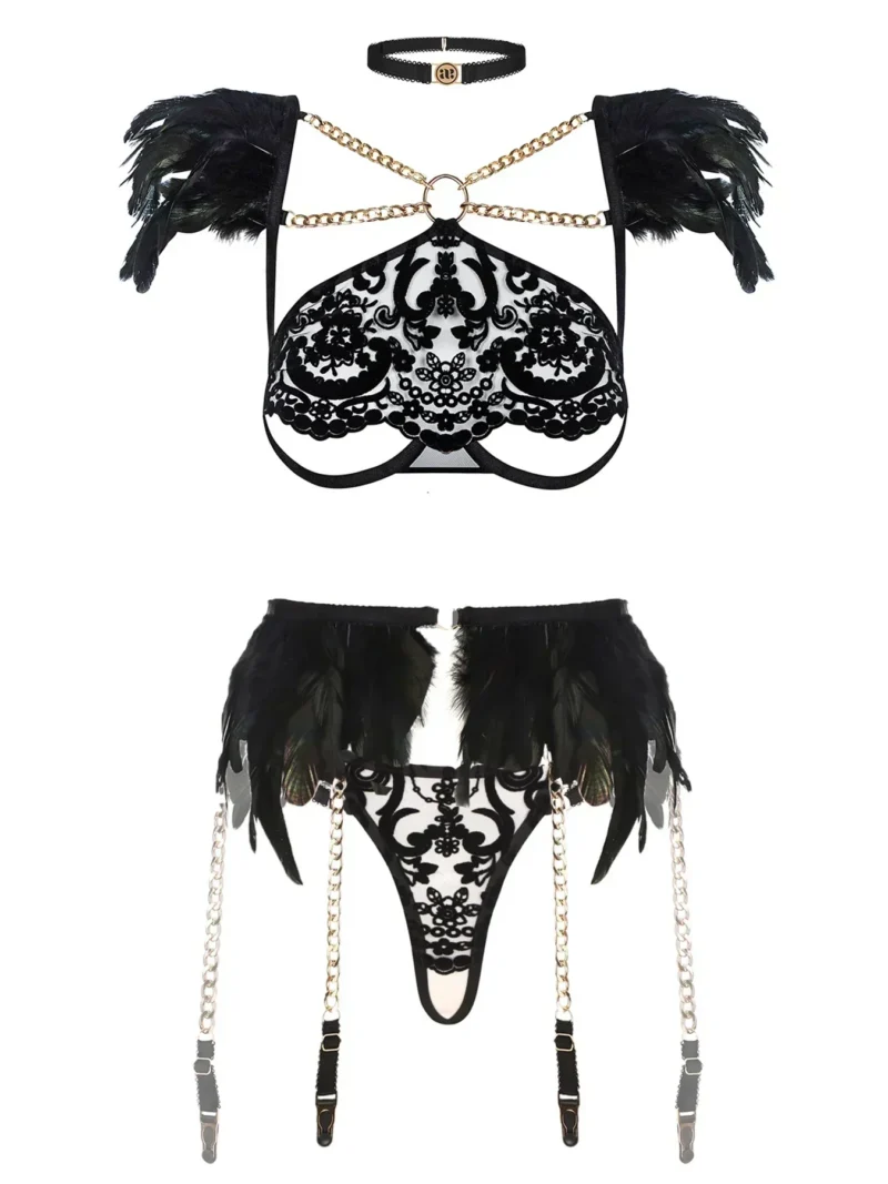 Pesukomplekt “Must Ingel” sobib ideaalselt eriliste sündmuste jaoks. Loomulikult annab see komplekt glamuuri teie igapäevasesse pesugarderoobi.