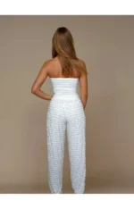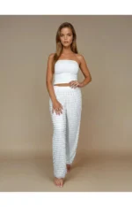 Top sobitub suurepäraselt Froufrou pidžaamapükstega, moodustades tervikliku ja harmoonilise komplekti.