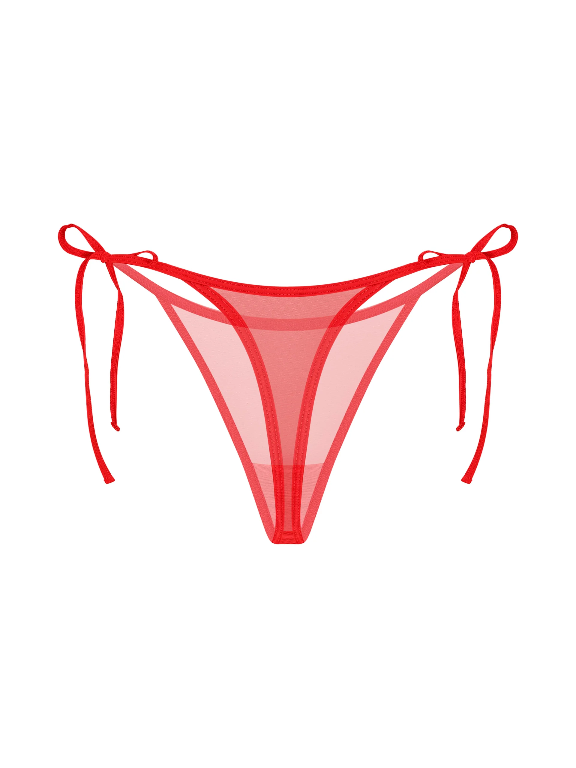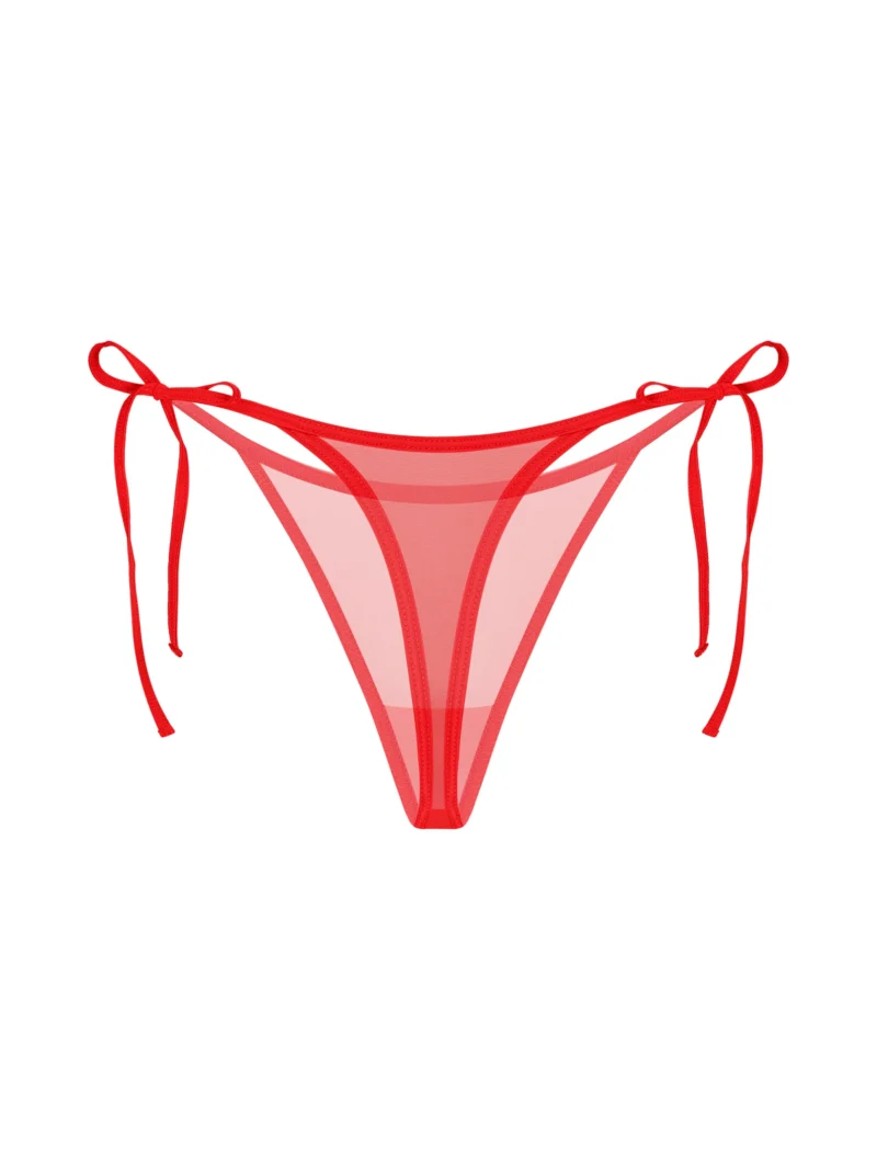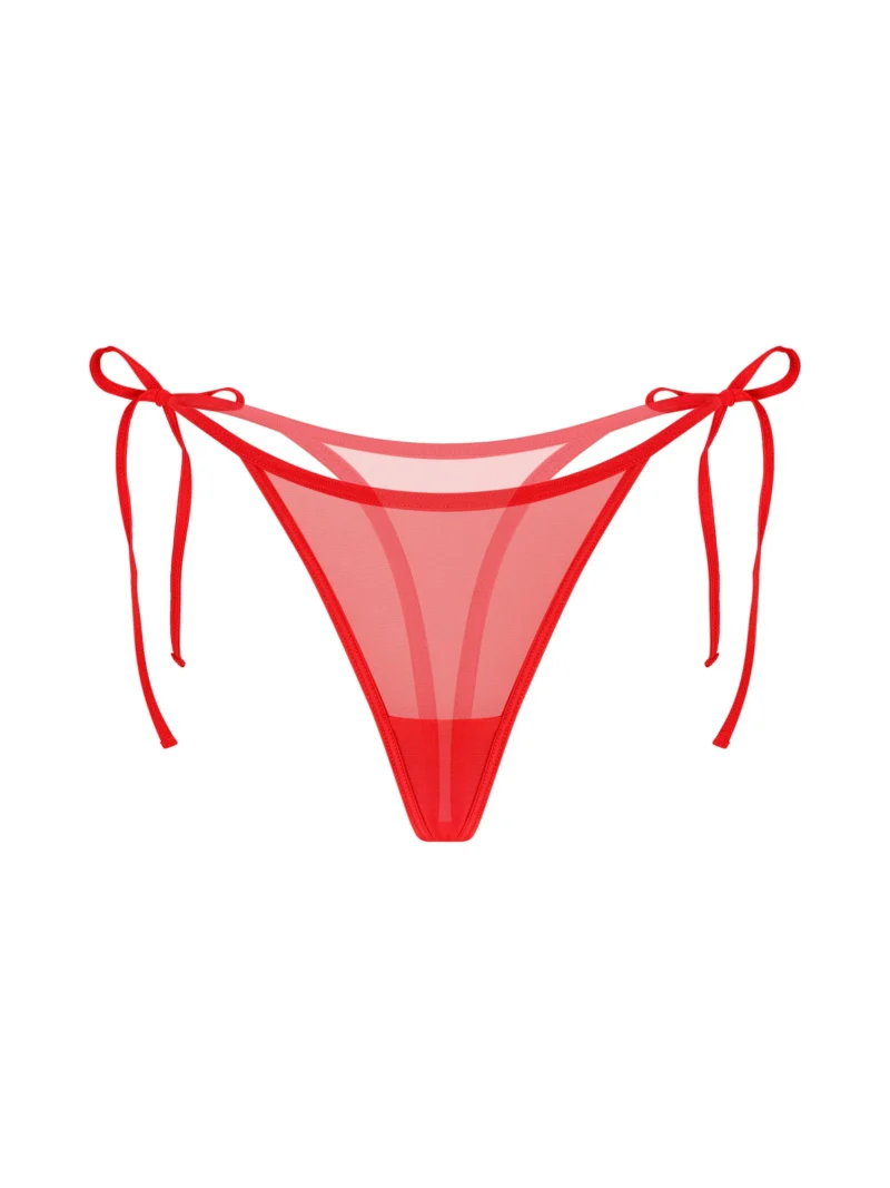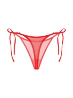 Double Heart püksid on valmistatud punasest elastse võrguga materjalist, mida täiendavad samas toonis satiinpaelad. Materjal istub kehal pehmelt ja järgib kehakuju, rõhutades siluetti ilma liigse pingeta. Paelad lisavad visuaalset mängu, kuid üldmulje jääb tasakaalukas ja maitsekas. Need on püksid hetkeks, kus soovid midagi erilisemat, ent mitte ülepakutut.