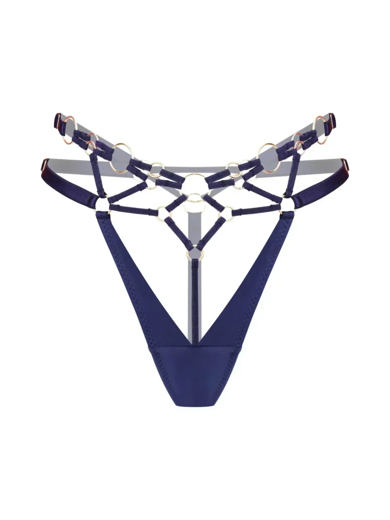 Valmistatud sügavast merevärvi satiinist koos struktureeritud rihmade ja kuldsete aktsentidega, loob see visuaalse ilme, mis köidab tähelepanu. Ta ei järgi trende – temast saab hetk.