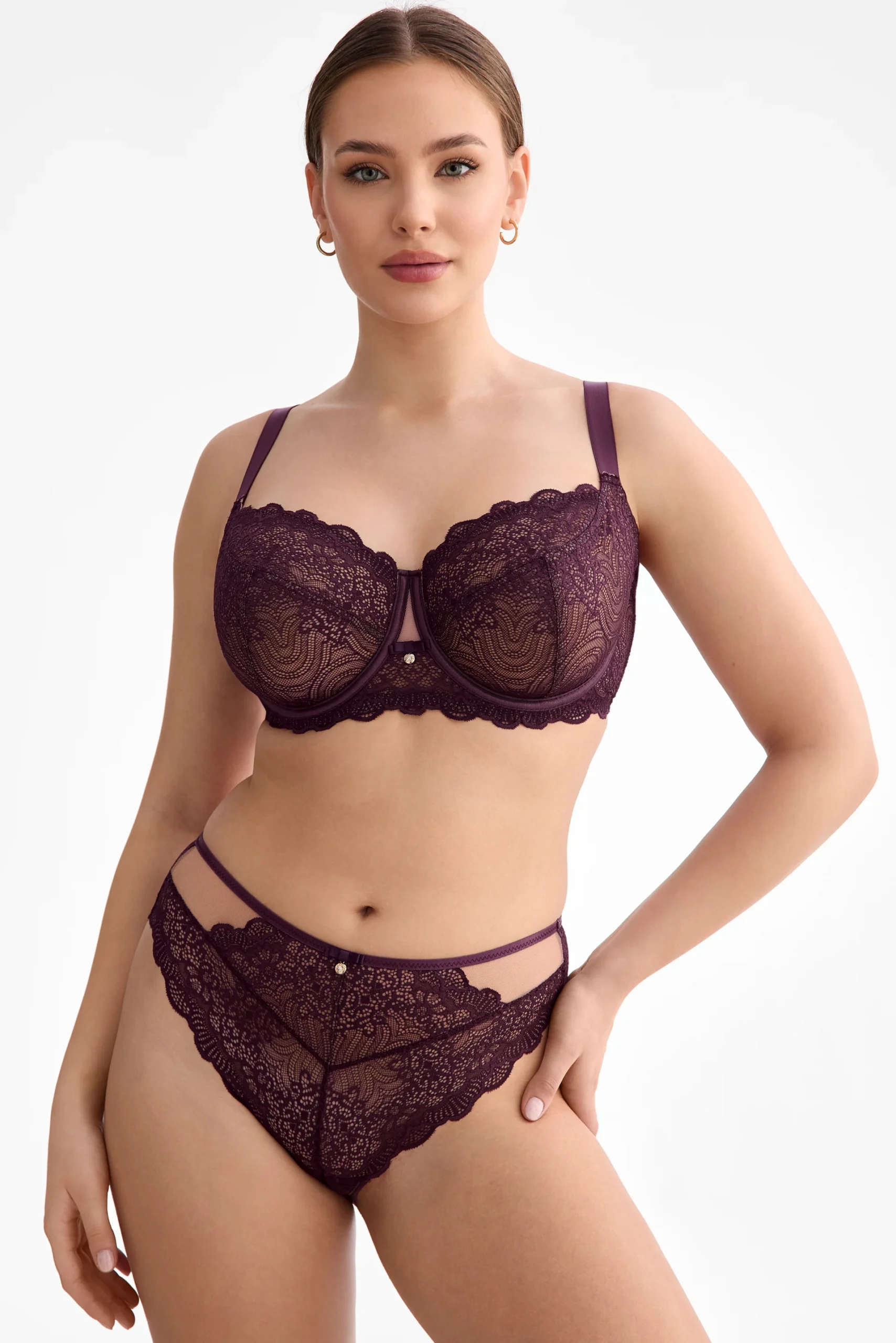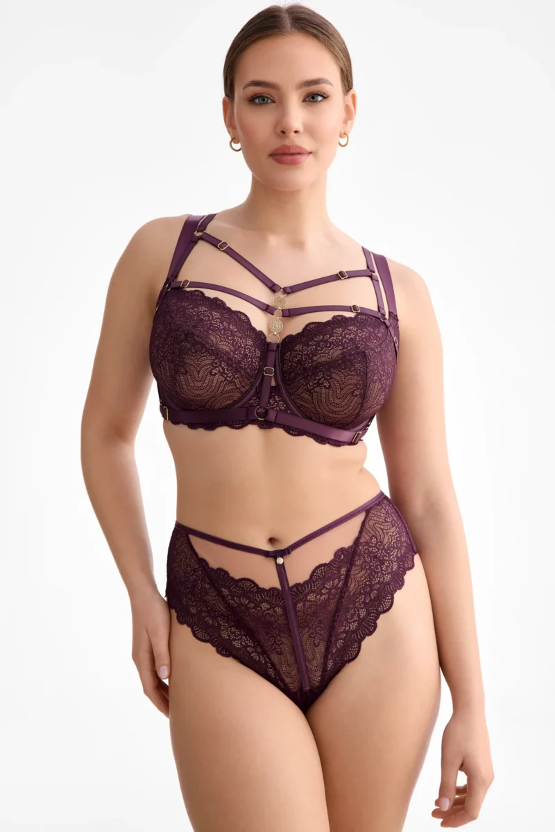 Rinnahoidja Maribel on loodud naisele, kes hindab klassikalise lõike mugavust ja pitsi peent luksust. Sügav ploomililla toon ja kuldsed detailid annavad rinnahoidjale elegantse ilme, samas kui pehme tugitüüp pakub kindlat, kuid õrna tuge ka suuremale rinnale. Korvid on vormitud ilma liigse polsterduseta, et säilitada loomulik kuju ja mugavus igapäevasel kandmisel.