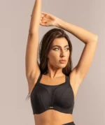 Ajatu musta värvi Active base sport kollektsioon sisaldab tohutult laia valikut lõikeid, mis on kohandatud aktiivsete naiste vajadustele. Sport Bra on spetsiaalsest vahust valmistatud rinnahoidja, mis stabiliseerib kehalise aktiivsuse suurenemise ajal. Selle alumine osa koosneb kolmest osast ja on vahuga jäigastatud. Sellel on täiendav küljepaneel, mis peidab kaenlaaluste piirkonna ebatasasused ja lükkab rindu keskkoha poole, võimaldades teha kätega harjutusi vabalt eri suundades ilma marrastusteta. Kui rinnahoidja rihmad on õigesti reguleeritud, varjab see suurepäraselt erinevused mõlema rinna suuruse vahel. Mudel on viimistletud kiiresti kuivava kangaga.
