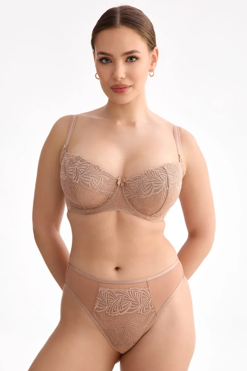 Aluspükste esi- ja tagakülg on valmistatud geomeetrilisest tikandist ja läbipaistvast tüllist;