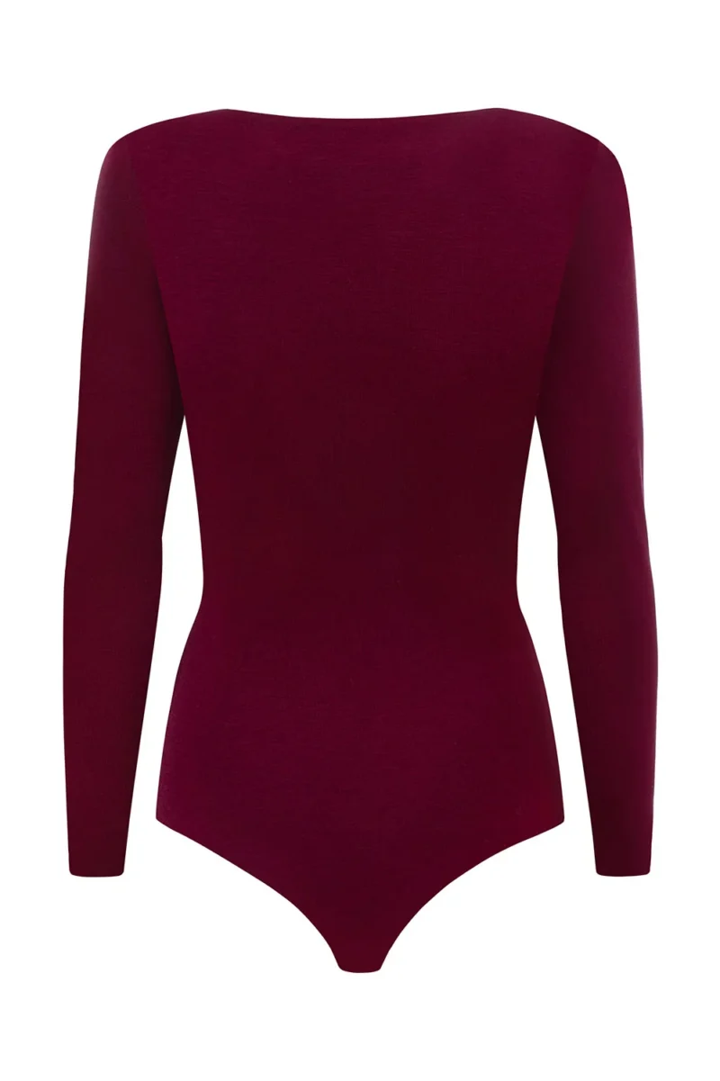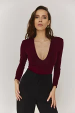 Sügava kaelusega bodi, mis paljastab kaunilt dekoltee. Ideaalne õhtusteks väljasõitudeks. Valmistatud kahekordsest trikookangast, õmblusteta viimistlus. Bodil on õlakud.