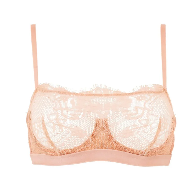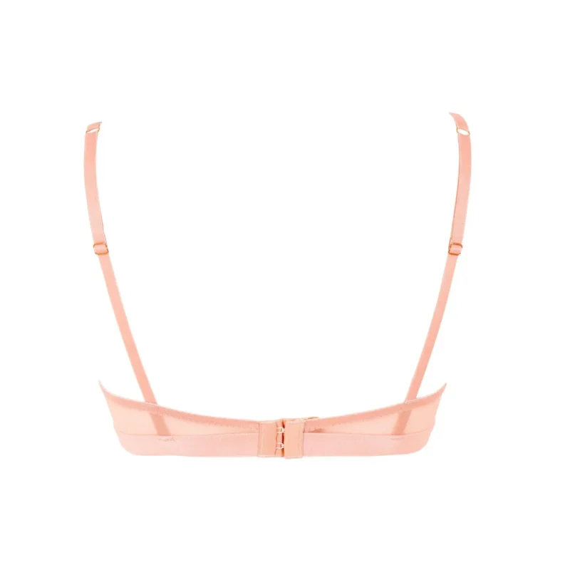 A unique piece to add intrigue to any lingerie wardrobe. Delicately fringed eyelash lace is secured in the elasticated underband and sits free over the underwiring, giving an easy bandeau feel complimented by the structure of the underwiring. Superfine mesh sits soft and cool against the skin in the backband, which secures with hook and eye fastenings. Simple, partly adjustable shoulders straps and gold tone hardware add the final touches to this elegant piece.